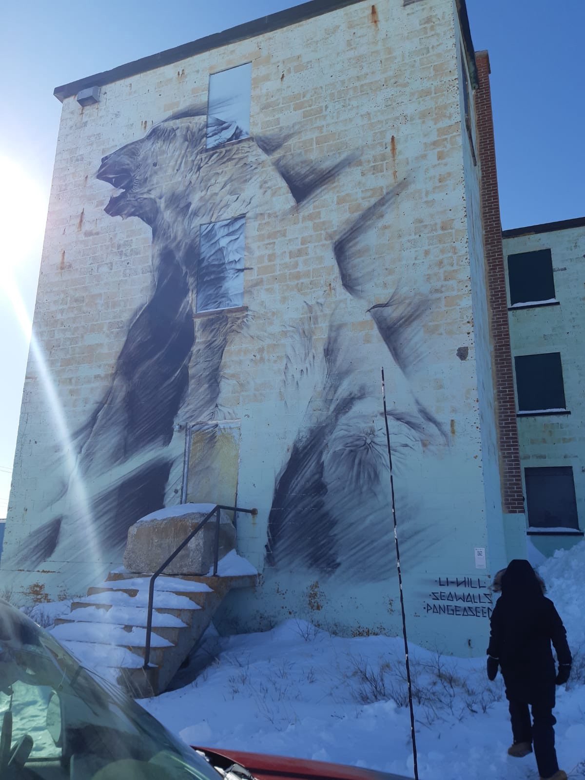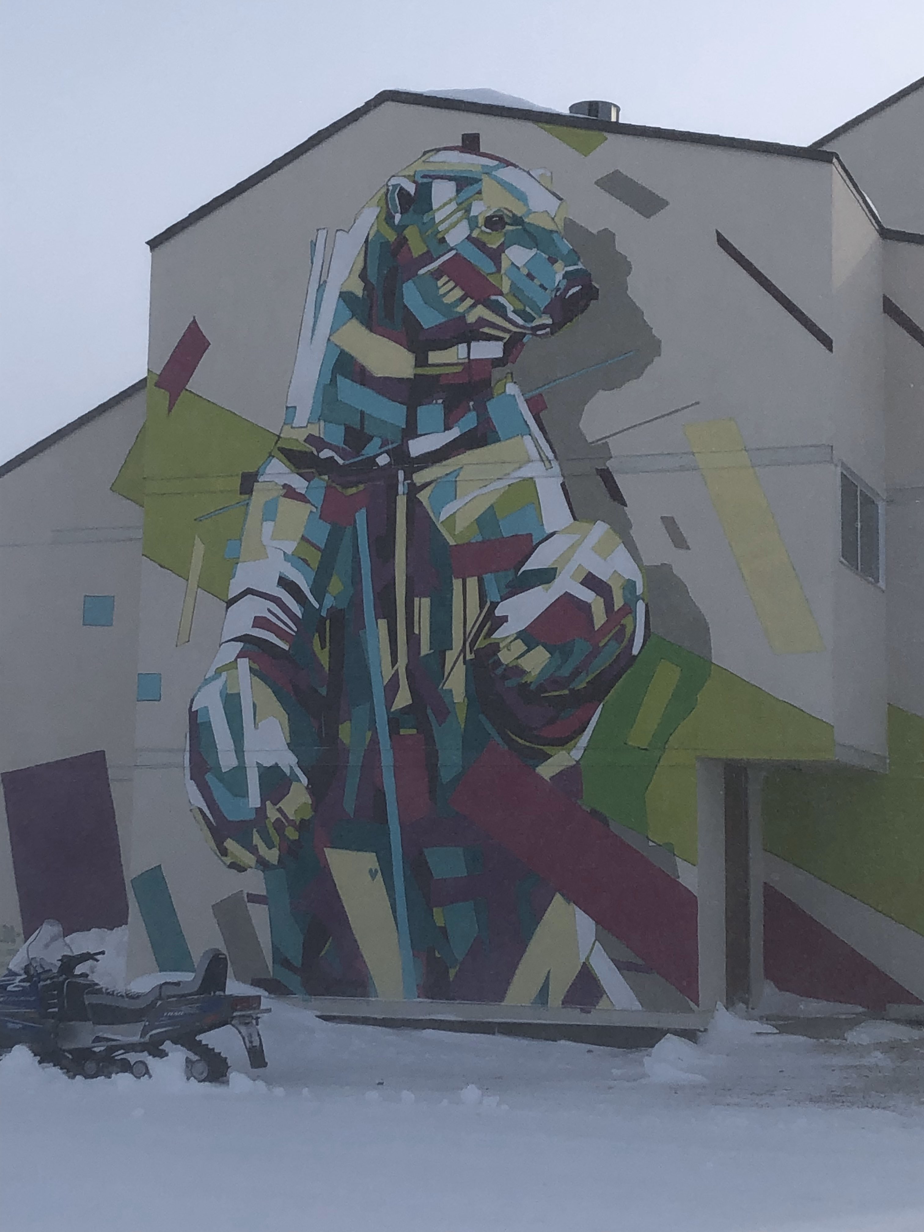 After leaving Canada there is one piece of art that has stuck with me thorough out my time there and will most likely stay as one of the most interesting parts of that trip. The town where I spent my time was an old military town back when the rocket range was still operational, this and the constant cold wind and snow makes the place a little dreary. But an old military town built to support many more than live their now has one good thing abandoned buildings and plenty of them. You may wonder how are abandoned buildings good and how can they have anything to do with art well to sum it up in one-word Murals.A while ago a group of artists chose Churchill as the location of a mural painting project in hopes to bring some attention and cheer to a dying town because of the port closure. This painting project was almost canceled because of a devastating storm that wiped out one of the only two ways to get to the small town of Churchill. Because of the loss of the train all the supplies for the project had to be flown in.This did not stop the artists because the organizers managed to fly out enough supplies. And thus, the painting started. The project lasted a weak and was met with skepticism at the start but by the end the entire community of Churchill was behind them. I was lucky enough to see most if not all the mural’s myself and let me tell you they are a sight to see. The most memorable ones for me were, The beluga witch was painted on the old blast house of the rocket range depicting a beluga wale being attacked by some odd creatures representing the encroachment of humanity on the whales natural habitat, A massive 3 story tall painting of a polar bear done with an almost empty can of black spray paint at the last day of the event, and the painting on mis piggy a crashed military plane I got to go and explore.The murals listed above as well as many others are just one of the amazing parts of the art culture in Churchill. These murals also brought some cheer and attention to the small town and are now are a mandatory stop for many of the people coming up to see polar bears or the northern lights.I am going to attach a link at the end of this to the documentary made about the murals as well as some of my personal pictures of the amazing pieces of art done by the artists that came up to help the town in the best way they knew how. I feel like this kind of art can be so important for a culture and is a wonderful way to use up space that is otherwise a plain brick or concrete wall.