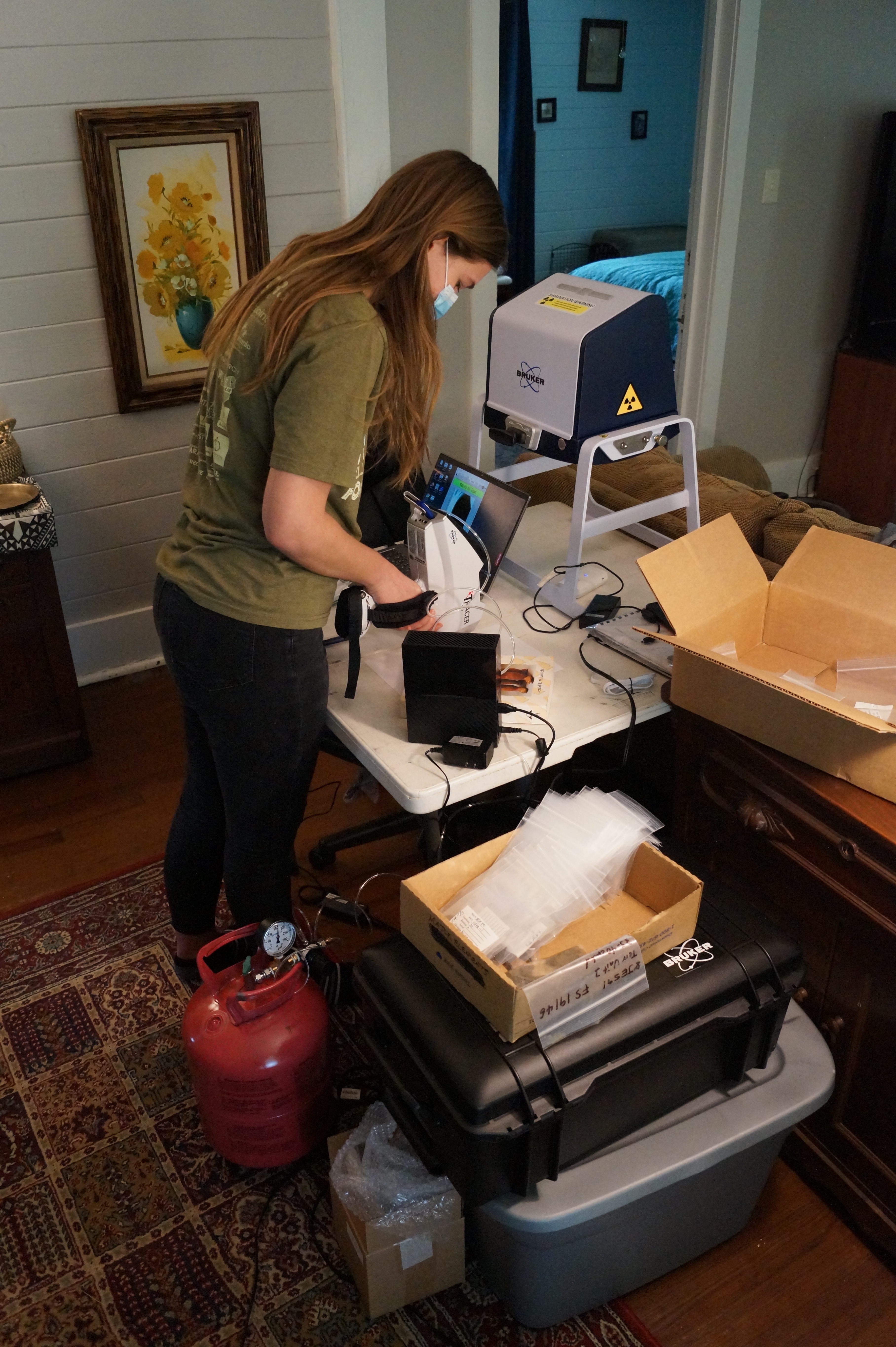 The goal of my project is to better understand how the material culture of the Aucilla River Basin evolved as local communities and subsistence strategies also changed; this study will be the first to include material from the river basin and will help fill in an important part of Floridian history. Additionally, and perhaps just as exciting, the collection of ceramics is privately owned, allowing for analysis to be completed off-campus and general project progress to move forward despite the quarantine restrictions of students not being able to travel far from home or be on FSU’s campus. Recently, I completed the data collection phase of my project, in which I used a portable X-ray fluorescence spectroscopy device (pXRF) to conduct elemental composition analyses on the collection of Page-Ladson ceramic material. This part of the project was an especially exciting crossover between my chemistry lab experience and my more recent developing interest in the world of archaeology.