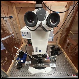 However, single-cell filling is no easy feat! It requires skill, patience, and specialized equipment to get accurate and reproducible results. During the past semesters, I began to learn the complex intracellular procedure. Since then, I have identified protocol improvements that will lead to a more successful and reproducible procedure. To characterize cells produced from brain slices, biocytin is used to fill them while simultaneously recording the tissue voltage using an electrode. The tissue is kept alive by maintaining it in a calcium and potassium solution with a stable oxygen flow. Antibody staining is then performed to study the cells’ morphology and neurochemistry. To achieve the best results, the tissue is sectioned to 100μm or less before antibody staining. By working on these promising procedure developments, we hope to understand and create a better procedure for cell filling and also deduce more information on the MNTB region.