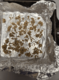 Since we had spent around 3 hours in the lab by this point, we decided to take the most well-bleached algae solution, strain out the liquid, and try to dry and further pulverize the algae, which may improve the bleaching process and prevent hiccups in the further steps of the experiment.