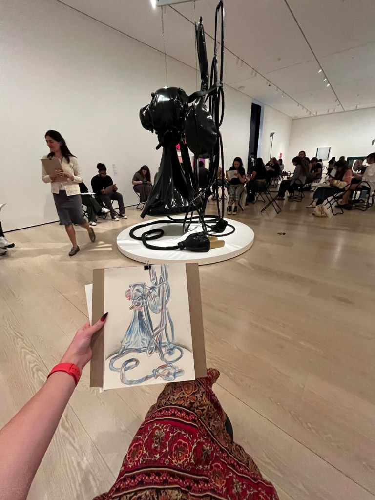 As someone who is exploring a museum studies minor, my experience visiting museums has made me more interested in becoming a staff member of a museum someday! I was able to see so many different modes of displaying art, and I particularly found the MoMA to be incredibly interesting. While I was there, I happened to walk in on a drawing practice of Claes Oldenburg’s Giant Soft Fan and joined to sit with other people sketching. It was so nice to create with others and set a great mood for the first day of my trip. While on my last day of the trip, I visited The Strong National Museum of Play and was amazed to see all of the ways that objects could interact with viewers.