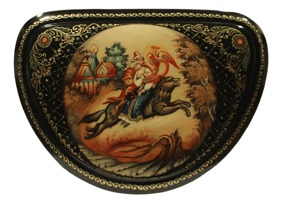 Tsarevich Ivan, the Firebird and the Gray Wolf, Fedoskino, USSR, Lacquer, papier-mâché