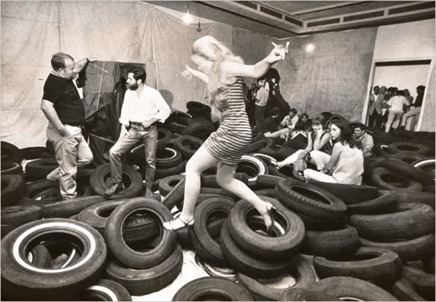 Also present in my work is an ethos of play. As I make the components of my sculptures without hardware, I am also creating an archive of interchangeable landscape and animal forms which can fit together in near countless permutations to create new hybrid and collaborative spaces in any exhibition room. As I plan my works, I like to think about the ideas of Alan Kaprow, an influential 20th-century performance artist whose artworks challenged the traditional art canon and embraced play and experimentation. His contributions to the performance art tradition eventually inspired artists like Second Front and Angela Washko, who recontextualized the artmaking philosophies of artists like Kaprow to pioneer new modes of artmaking, collaboration, and performance in new media like video games. These newer artists inspire the exploratory interventions I hold in games like the Fallout series to derive new forms and compositions for my artwork.