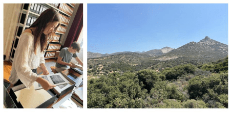 Left: Archival work at the German Archaeological Institute in Athens. Right: View from Melanes. The light colored mountain in the middle is actually a modern marble quarry!