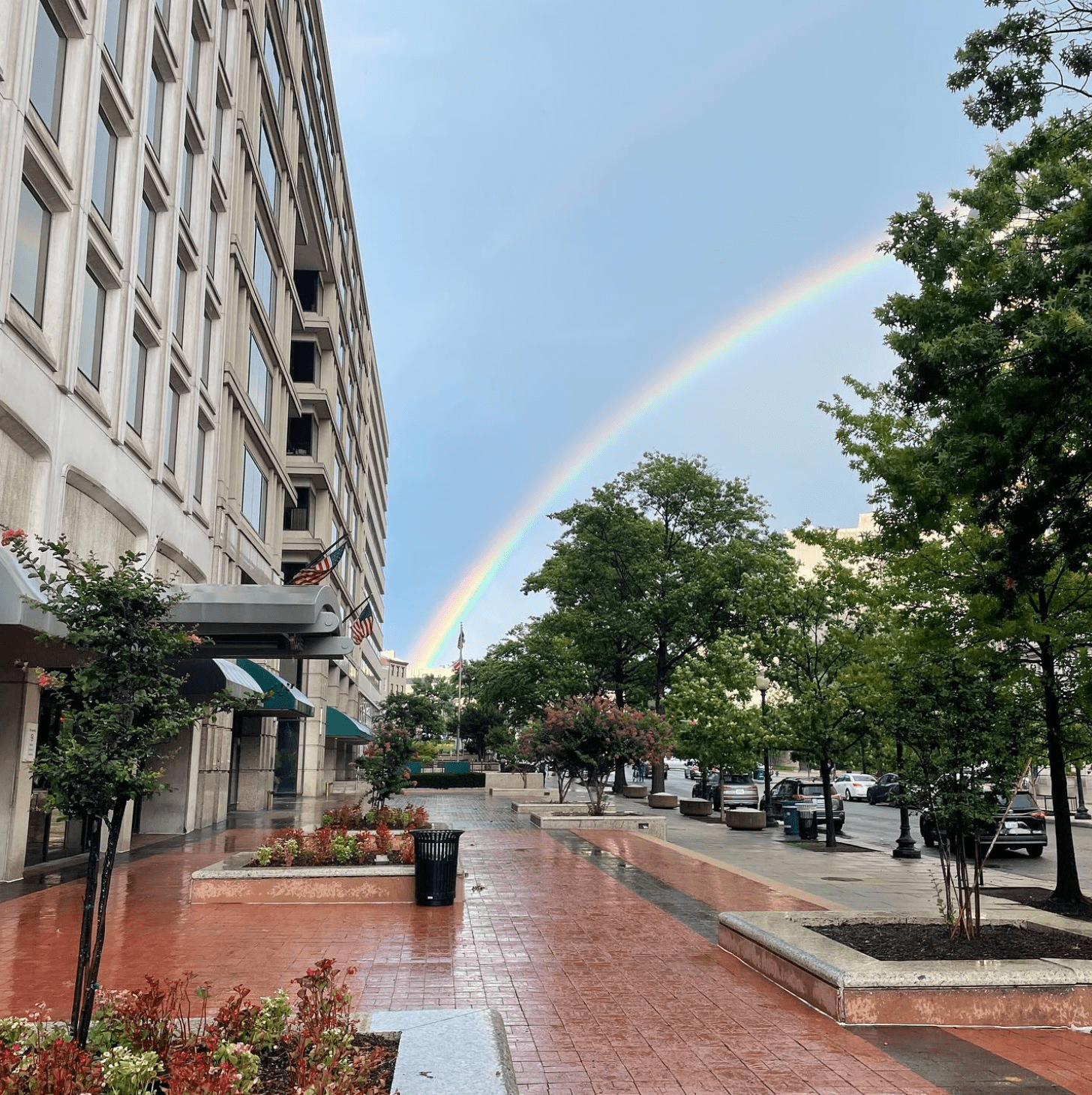 Pictured: a rainbow in front of the Public Defender Services for the District of Columbia located in Judiciary Square
